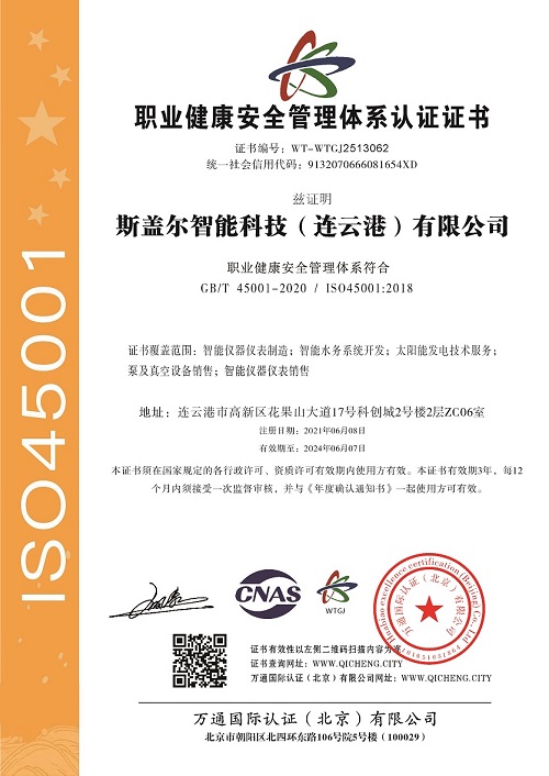 職業(yè)健康安全管理體系認(rèn)證證書(shū)