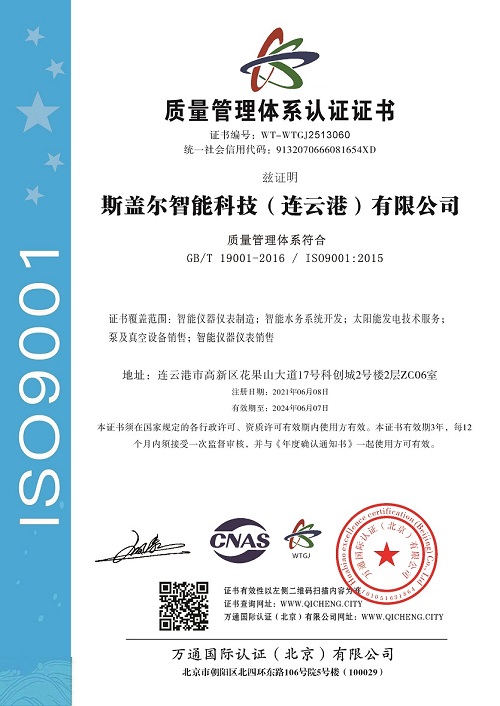 質(zhì)量管理體系認(rèn)證證書(shū)